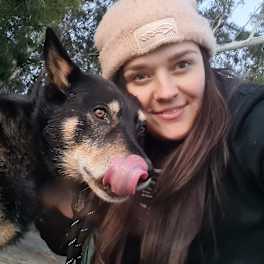 Mack is a Kelpie x Blue Heeler, he's 13 years old, and is adaptable to new places, is friendly and well-behaved.