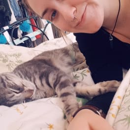 Hi, I'm a part-time school worker (away for work between 5am - 8am and 2.30pm - 5.30pm) with extra cleaning jobs on the side. I also study Nail Technician course so on my days off or during split shifts I'd be tucked away studying or practising during the day. I'm generally shy and a massive introvert. I do have a cat but he's currently staying with relatives right now. He's a 4 year old male cat who loves to sleep most of the time or sneak cuddles from who ever is willing to receive. I'm looking for a place to have my cat and really just have a relaxing home. Genral interests are movies, reading fictional books and anything to do with art.