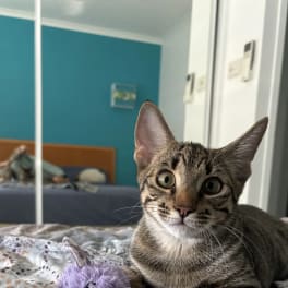 Flash is an indoor cat, he’s litter trained and he’s very affectionate.
