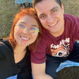 We are Brazilians, I am here studying English and working, my wife is at work for now.