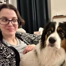 Hi, I’m Ash! I’m in my early thirties, and I live with my dog Rudi, who’s very friendly and loves both people and cats. I’m currently doing a PhD in Linguistics and working as a sessional teacher at Macquarie University.