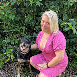 I have a beautiful older dog who just chills with me and I try and take her everywhere with me. She is house trained and friendly with people and other dogs.