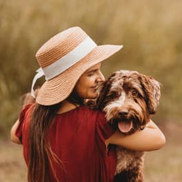 We also share our home with our friendly indoor/outdoor dog. She’s hypoallergenic and doesn’t shed, so even if you have allergies, she’s easy to live with and full of love.