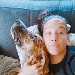 I have a big beautiful 4-legged baby named Aubrey. She is outside when no one is home but loves being inside when someone is home. She is a big softie but she is a good guard dog. She is a rescue and unfortunately is reactive to other dogs & doesn't like loud noises or sudden movements so I can't allow other pets or children.