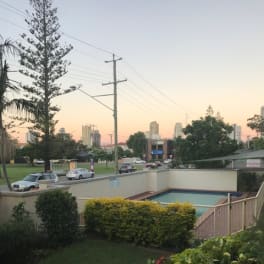 Swimming pool in complex with very large balcony with view if Surfers Paradise... 2 minute walk to many restaurants and bars....