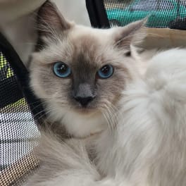 Late 30s asian male with non destructive ragdoll cat